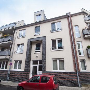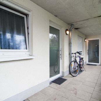 Die Wohnung befindet sich auf Hochparterre in einem 13 Parteien-Haus.