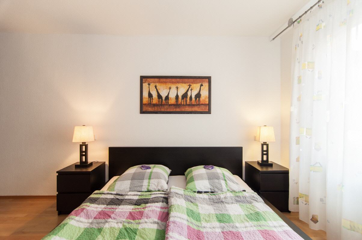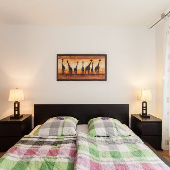 Es sind zwei Einzelbetten mit jeweils 90 x 200 cm Liegefläche vorhanden.