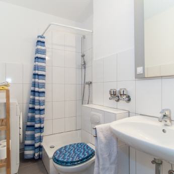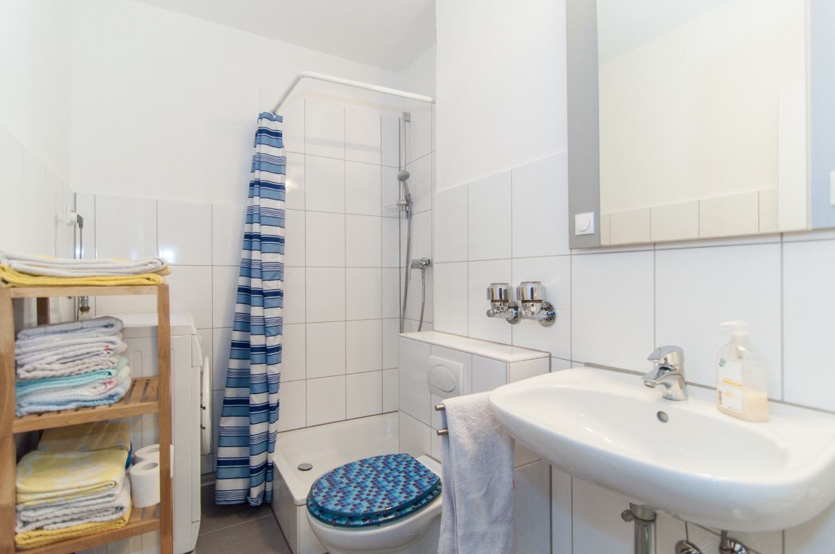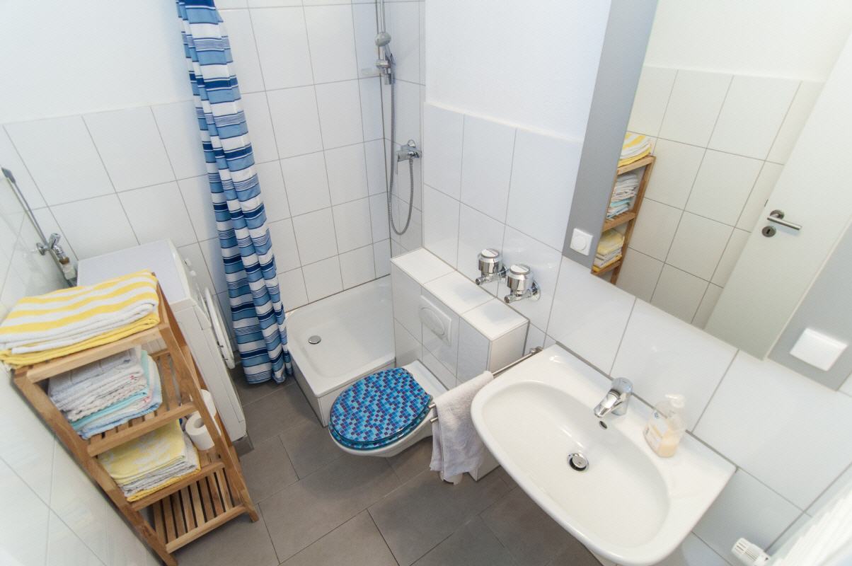 Ein Badhochschrank bietet genug Stauraum. Handtücher sind ausreichend vorhanden und werden von uns gestellt.